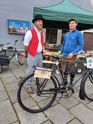| Restaurierte Fahrräder war 2023 unser Motto. Zu sehen waren zahlreiche Modelle, bei denen die Oberfläche durch Lack und Chrom bzw. Nickel erneuert wurden. Bei einer Komplettrestaurierung wird meisst die Wiederherstellung des vermeintlichen Auslieferzustandes des Fahrzeugs angestrebt. Deutlich sichtbar waren die unterschiedliche Herangehensweisen, was zu den erhofften Diskussionen und Gesprächen führte. Das Plakat hingegen verwies auf den oskar-prämierten Film "Im Westen nichts Neues", bei welchem viele restaurierte Fahrräder aus unseren Beständen zu sehen waren. | ||